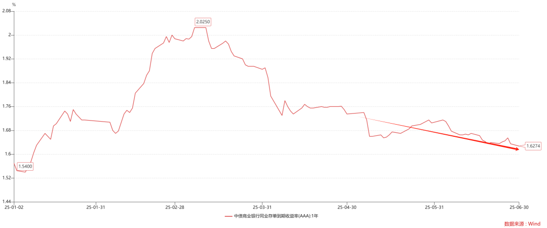 为了对冲这种回表压力,央行实际上已经做了很多中长期资金投放工作,包括但不限于降准、净投放mlf、净投放买断式回购等等。所以,我们观察到一年存单利率,总体平稳,有序回落。