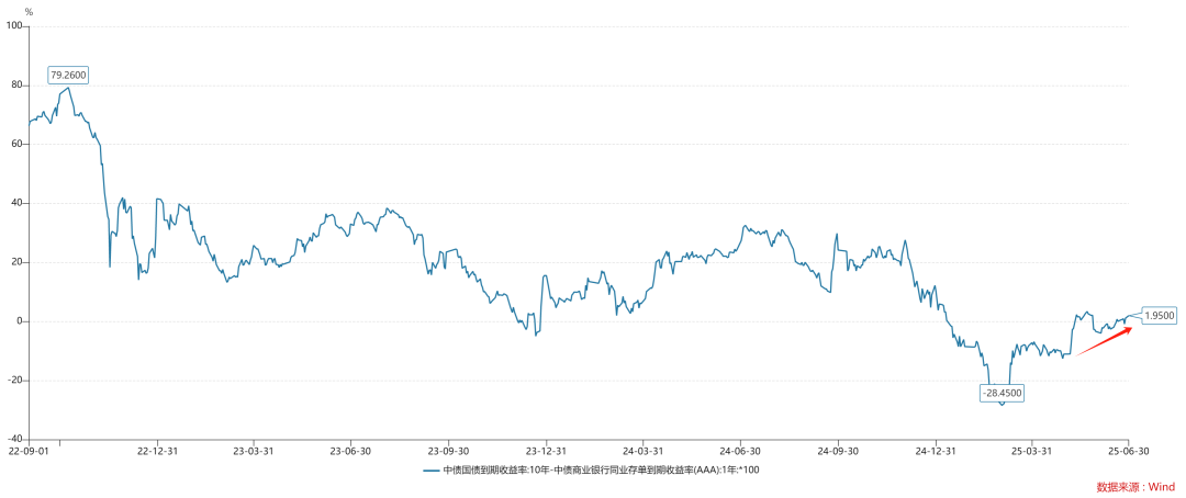 但是,这种对冲操作对长债的支撑是比较弱的,所以,我们观察到,十年国债和一年存单的利差逐步拉大,目前,已经回升到了+2bp作用。不难预见,随着离岸人民币的升值,回表进程会越来越剧烈,期限利差会进一步拉大。