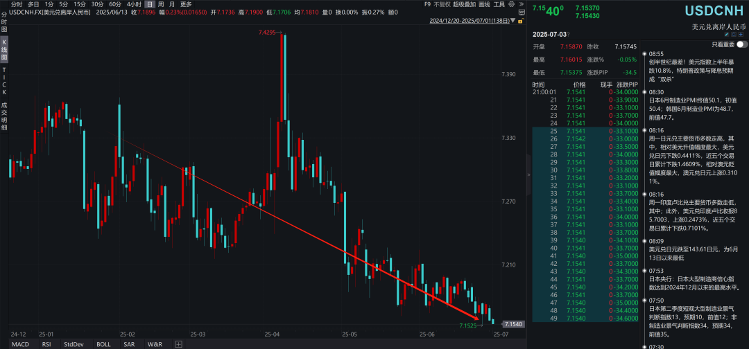 近期,离岸人民币持续升值,离岸人民币汇率已经来到了7.15附近,海外资本回流的态势十分明显。